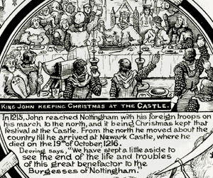 King John keeping Christmas at the castle from F Clements, From Whence Nottingham Sprang, Part II (Nottingham, 1891)