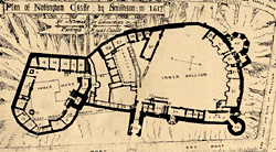 Plan of Nottingham Castle by John Smithson in 1610 from T C Hine, 'Nottingham: Its Castle' (London, 1876)