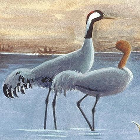 Left: Picture by Serge Nicolle of Cranes near a sandbank.