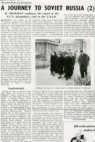 Before the department was able to arrange regular trips to the Soviet Union, students of the department were occasionally given the opportunity to travel to the Soviet Union as part delegations of international students, run by organisations such as the National Union of Students (NUS).