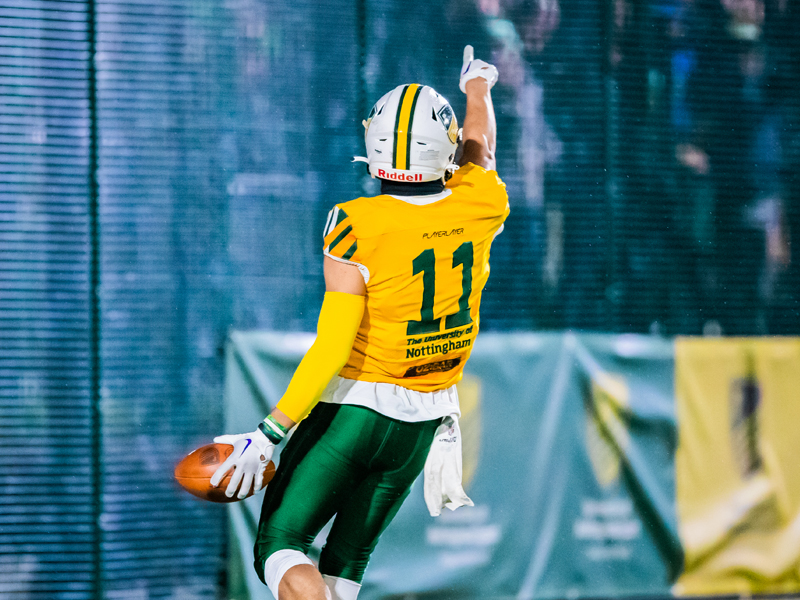 University of Nottingham American Football is led by Head Coach Jason Scott, who joined the #GreenandGold in 2017. After a debut 2017 season at the helm that resulted in a Division 1 Championship and promotion to the BUCS Premier League, Scott has guided his teams to postseason play in each season since including an undefeated first season at the highest level of British university American football in 2018.