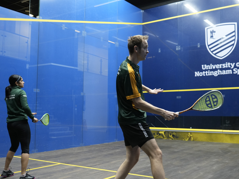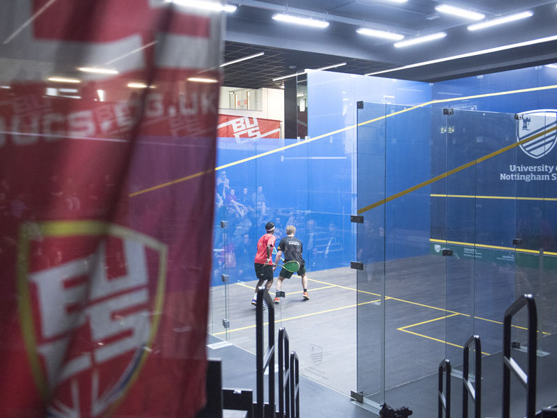 The squash facilities at the £40 million David Ross Sports Village are exceptional; they include six glass backed court as well as an all-glass show court with seating for over 250 spectators. With 3 additional courts at our other facilities and a strong partnership with Nottingham Squash Rackets club, student players at Nottingham can access a squash set up unrivalled in the sector.