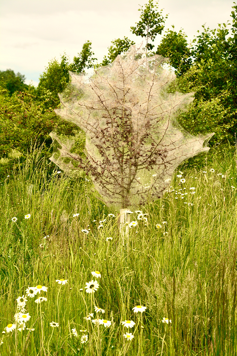 "I was really concerned when I saw the bush shown in photo 8, although of course it is a good example of the diversity of wildlife. The web is produced by ermine moth caterpillars, to protect themselves from predators. Surprisingly, although the caterpillars ate all the leaves, the tree recovered fully.