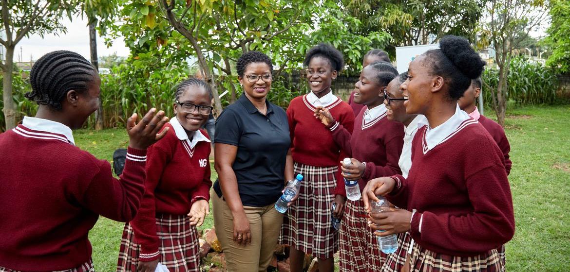 Kapumpe with schoolgirls from Hillside Girls Secondary in Chipata as part of community work with the FNB Foundation Staff Volunteer Program