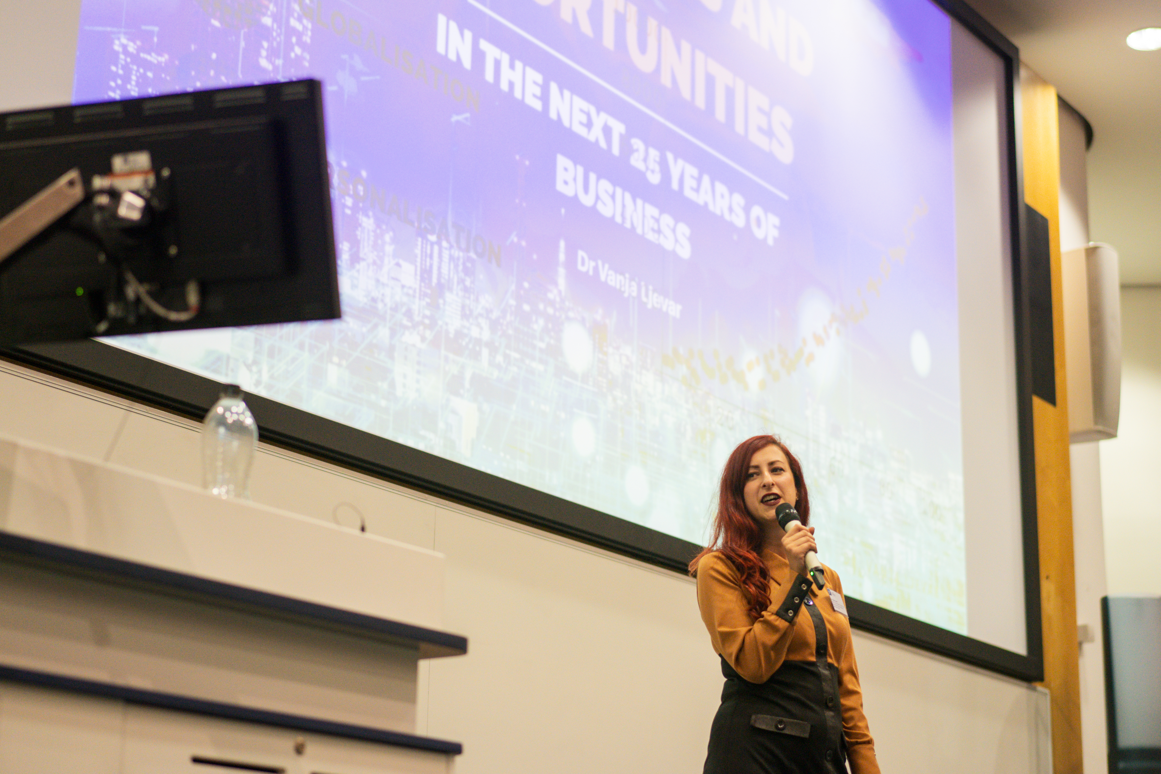 Vanja Ljevar's speech emphasised the importance of being an "outlier" in today's business world. She argued that average companies often struggle due to lack of differentiation, while those who break the mould are more likely to succeed. Ljevar identified three major trends shaping the future: automation, globalisation, and personalisation.
