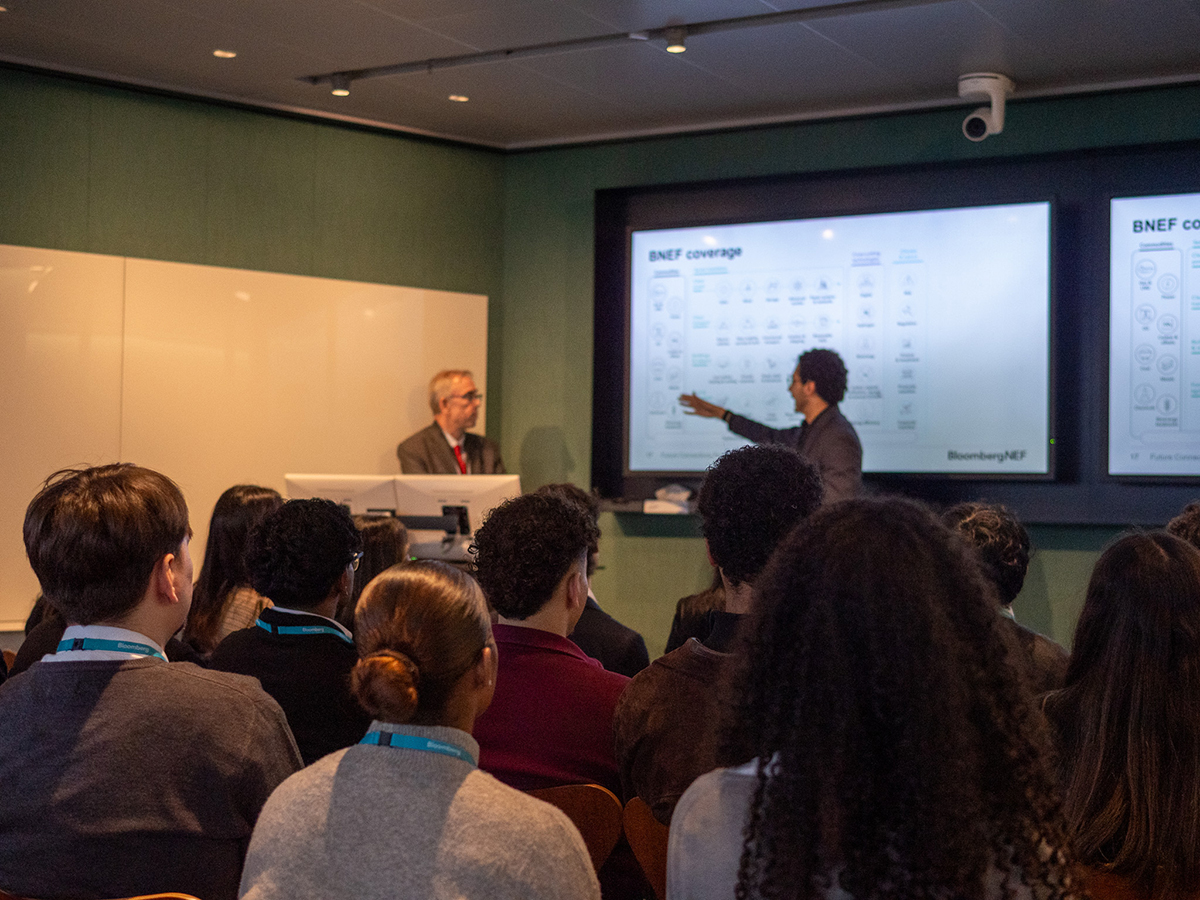 Our students heard from several BloombergNEF employees about their career paths, as well as from Head of BloombergNEF Jon Moore (Electrical and Electronic Engineering, 1986) about his own rise to the top.