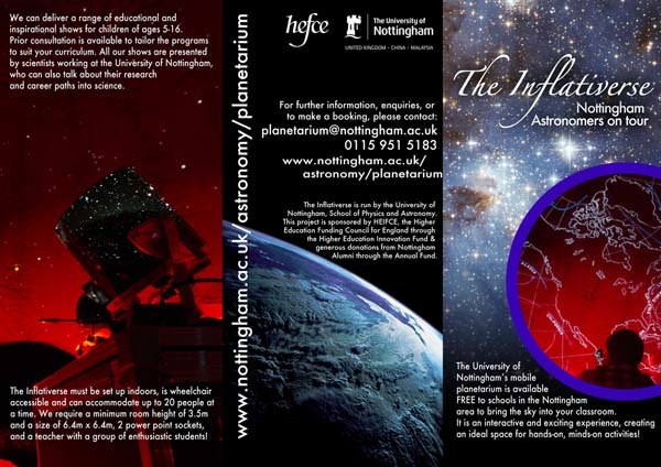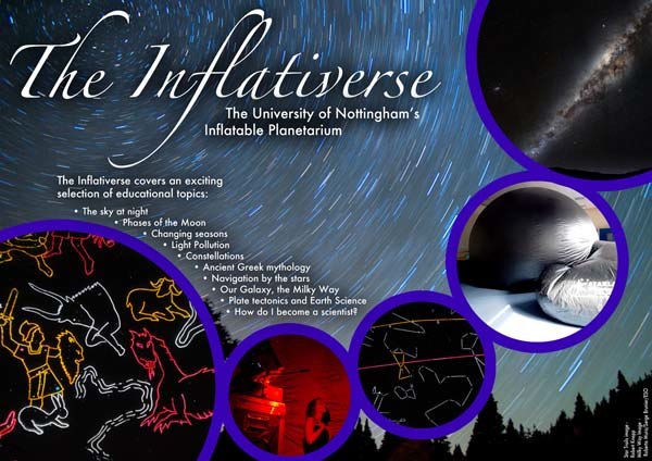 The Inflativerse is a mobile planetarium that is used by scientists from The University of Nottingham, School of Physics and Astronomy, to bring the stars to schools in the Nottingham area.