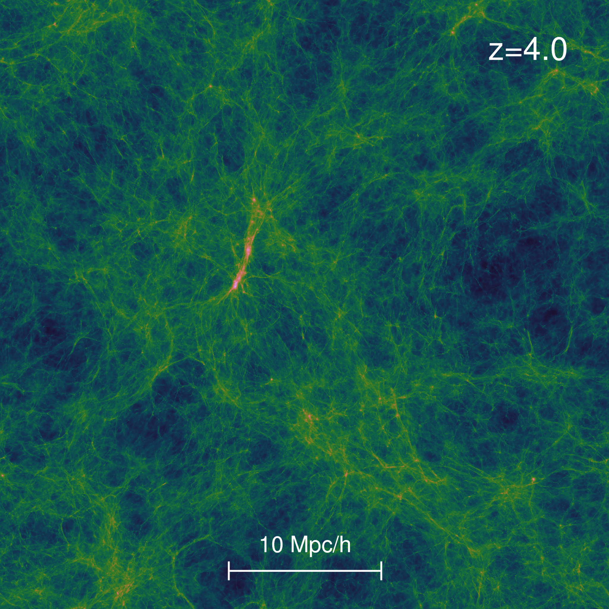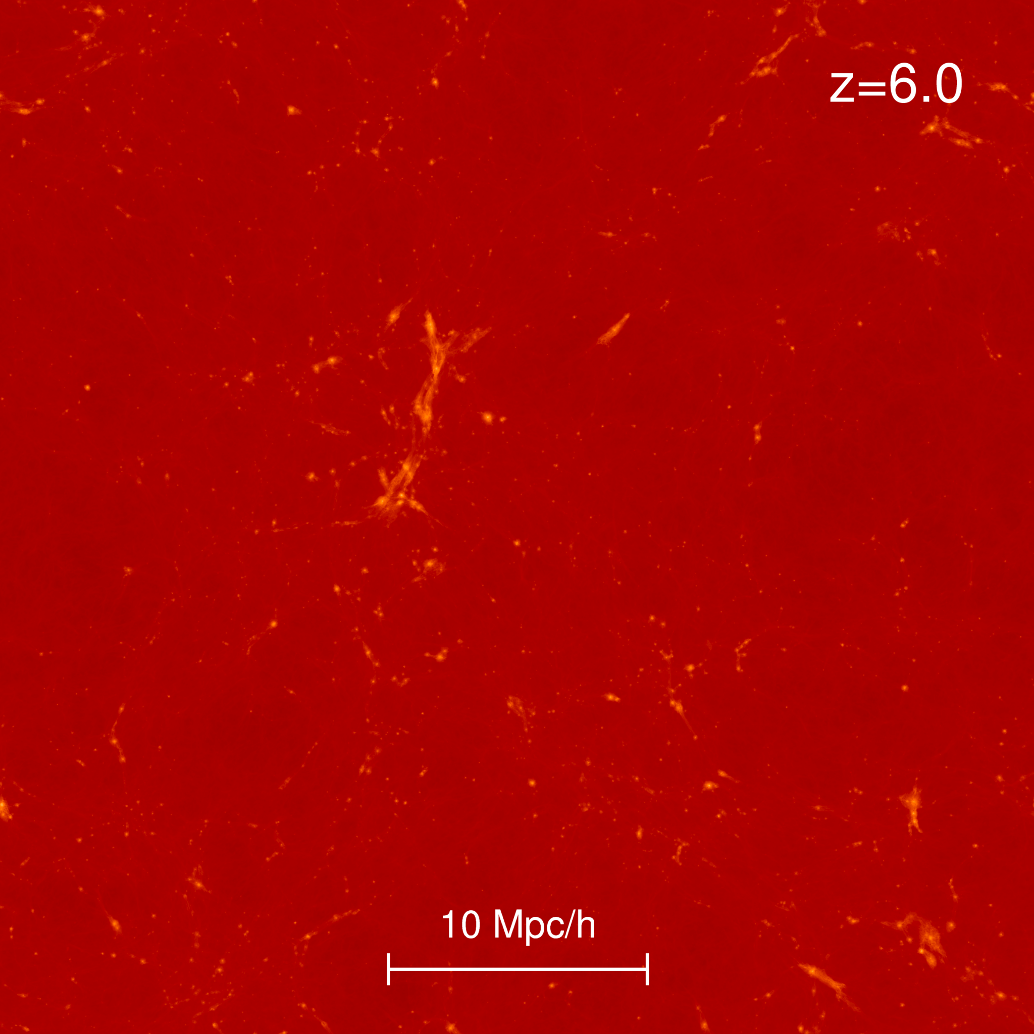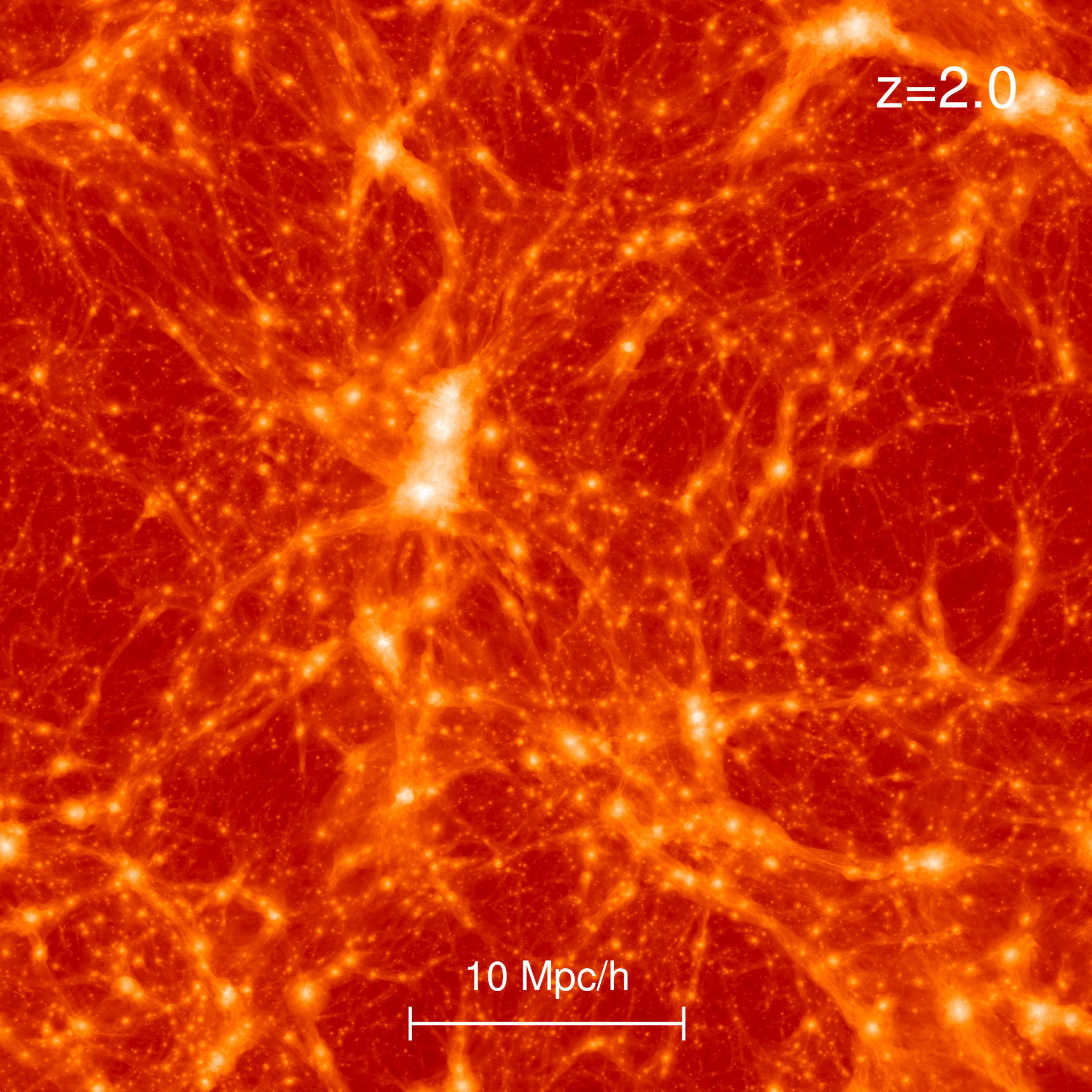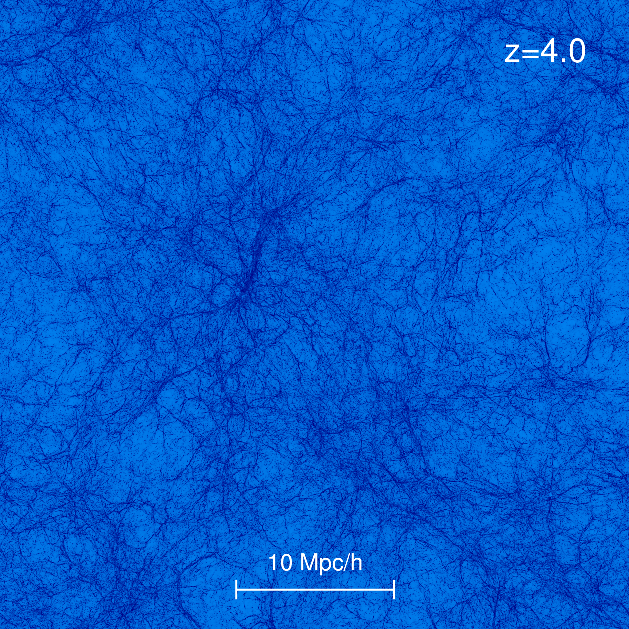 from redshift z=49 to z=2. The images are 40 comoving Mpc/h