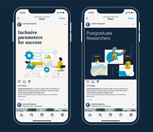 Our illustration style helps us to convey ideas in a clear and inviting way. Illustrations add a human angle to our content and our designs. They can help when photography is not appropriate or possible. They’re also useful for representing conceptual ideas. And they add a layer of personality to our identity. The below guidance sets out our illustration principles to help designers create bespoke illustrations for the university.