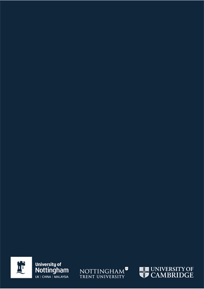 The white out version of the logo should be used when legibility is an issue with either the Nottingham Blue or gradient logo.