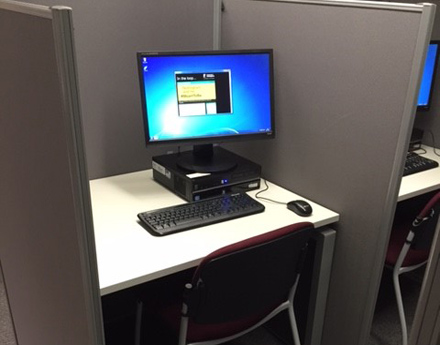 An individual desk in the CRIBS lab, ready for the subject to start an experiment