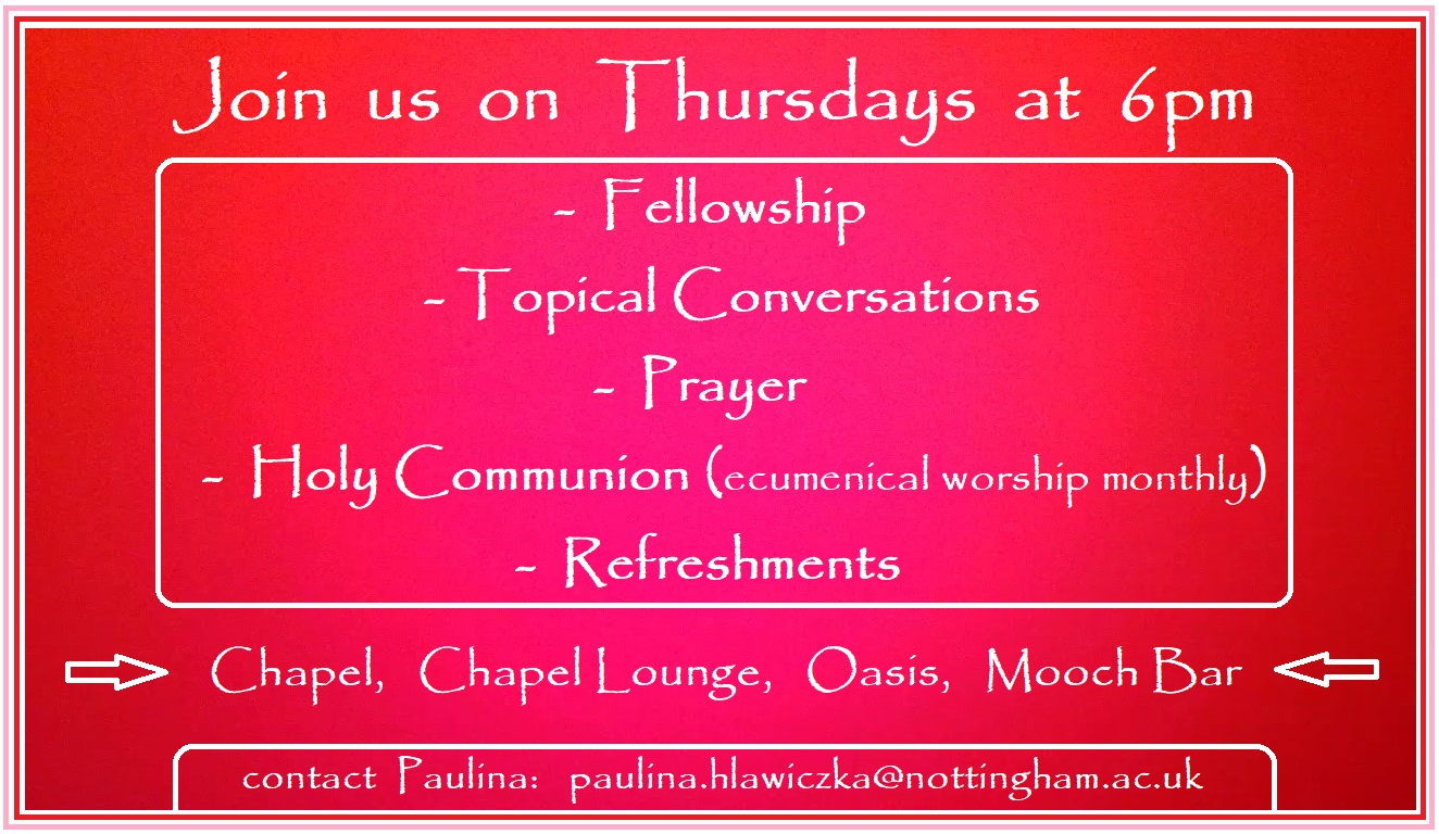 Tel: +44 (0)115 951 3931 Email: chaplains@nottingham.ac.uk