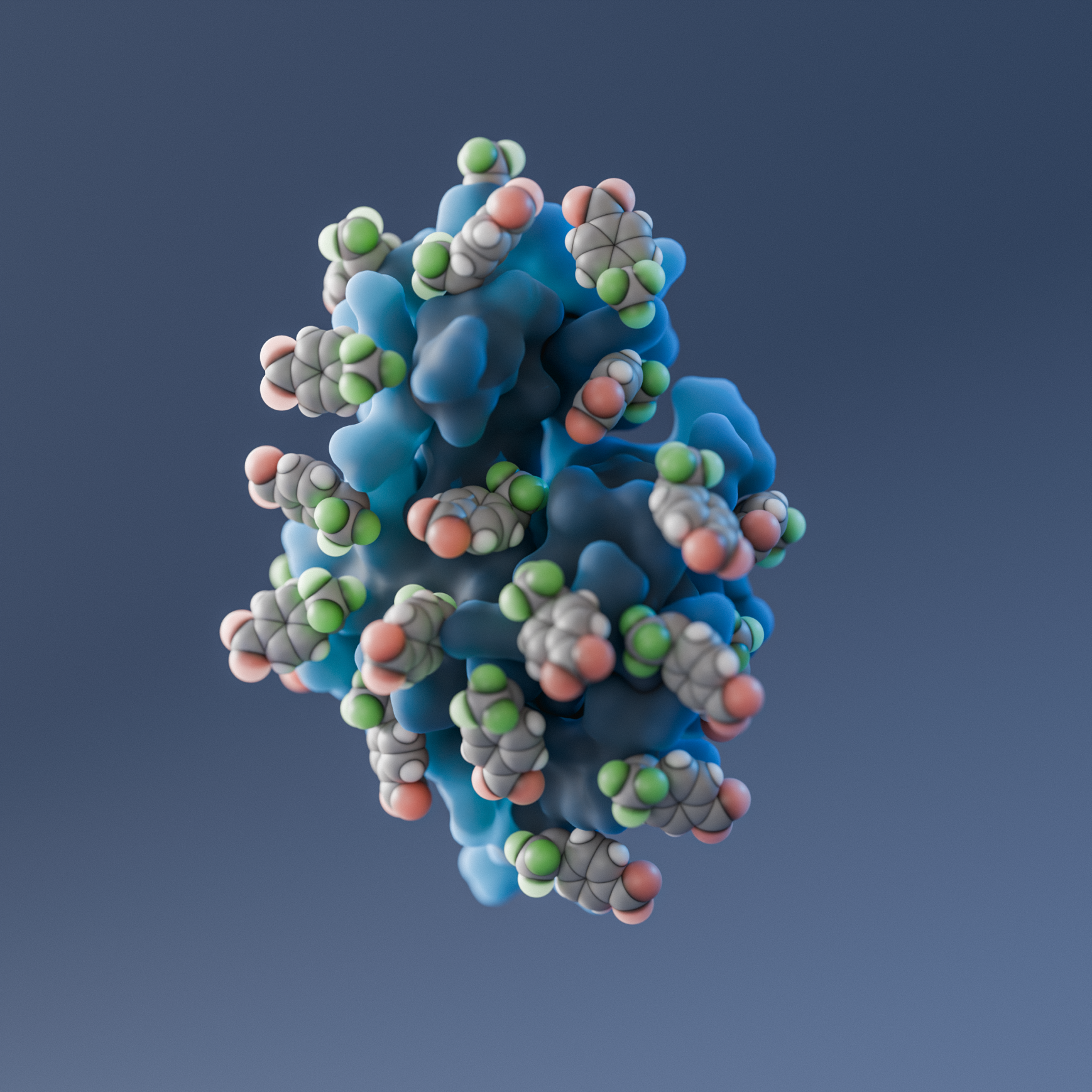 Left: Carbenes are able to react with the entire surface of unbound Lysozyme (blue)