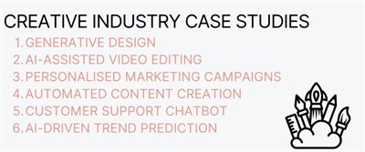 Within the creative industries, we learnt that AI use has revolutionised creativity and productivity in the following sectors: