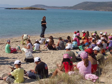Dr Chrysanthi Gallou (Director of CSPS) speaking to a group of Greek school children