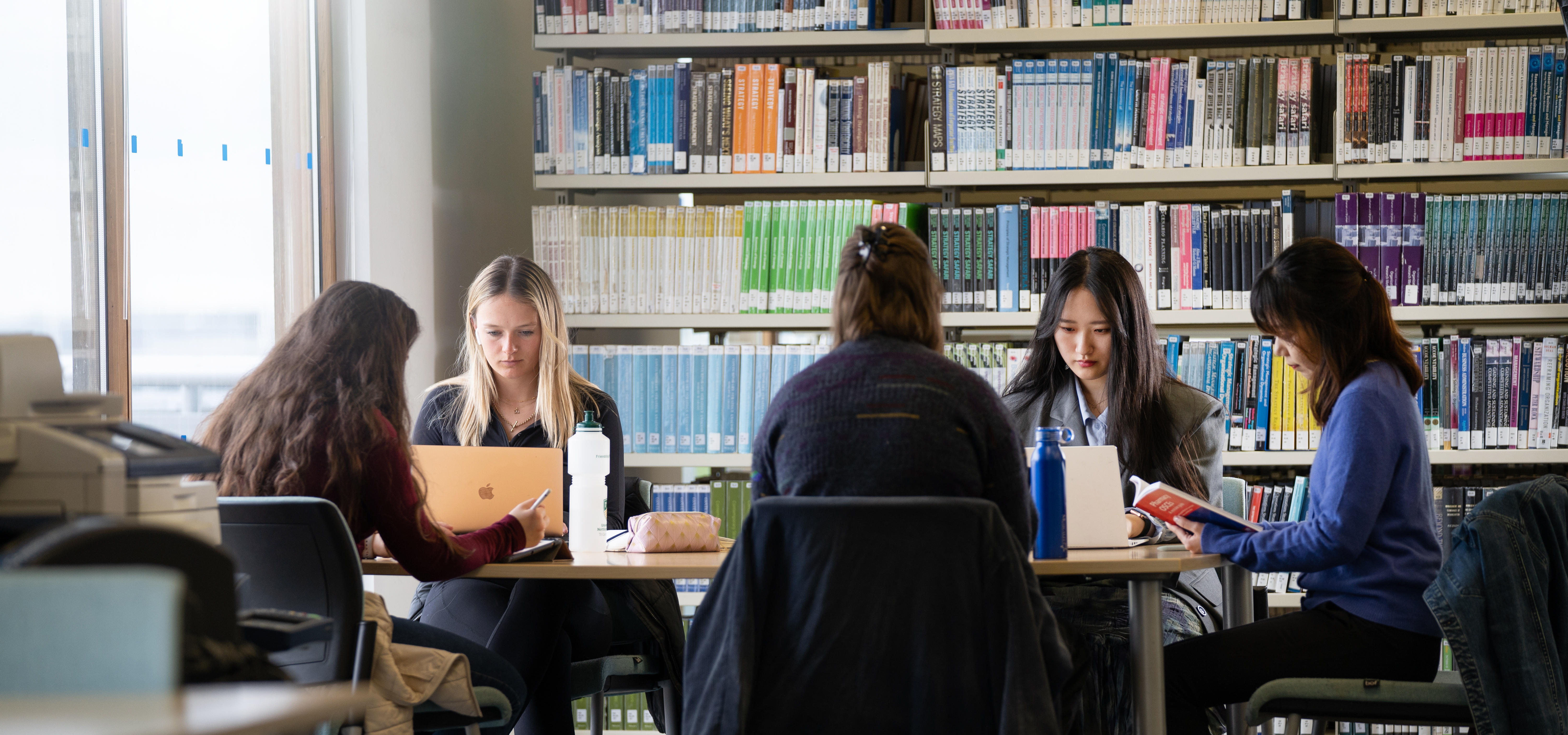 Nearby printing services and study spaces are available at the Business Library and the Exchange building.