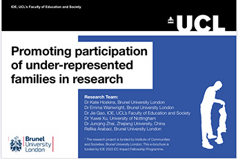 A new report aimed at promoting participation of under-represented families in research has been published by a UK/China research team. The project was funded by Brunel University London and this impact report was produced with financial support from IOE, UCL's Faculty of Education and Society.
