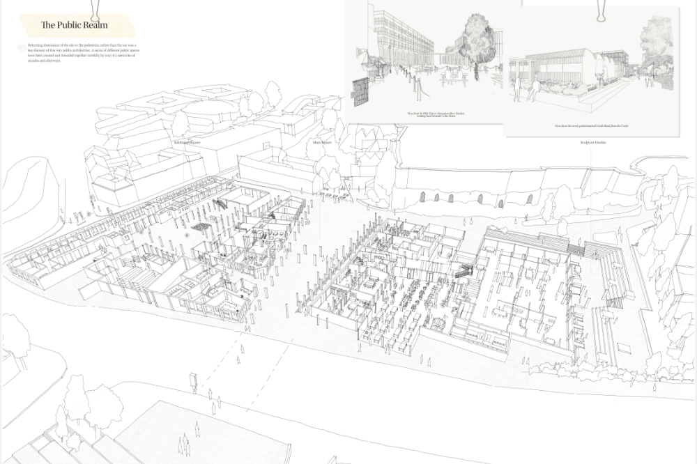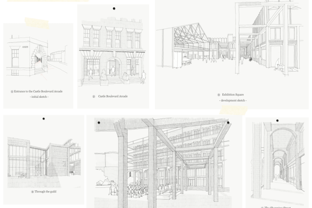 The creative guild aims to reignite Nottingham as a hotspot for craft and bespoke manufacture. It will offer varied spaces for making, designing, learning, business, the running of the guild and exhibition. A network of arcades, alleyways and public squares encourages movement around the site, displaying all stages of the creative process, celebrating this more than final outcomes themselves.