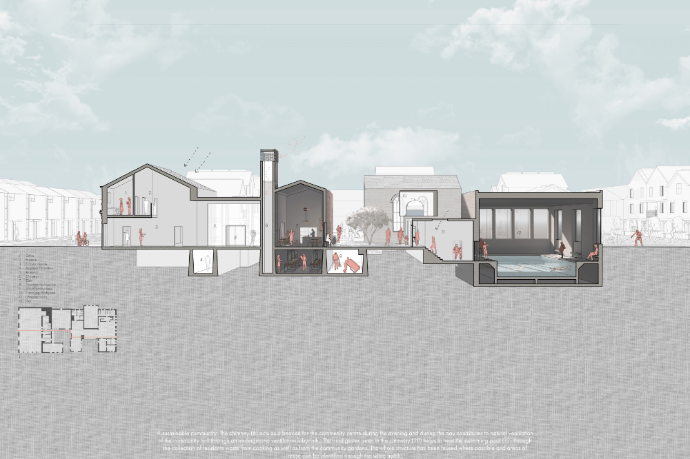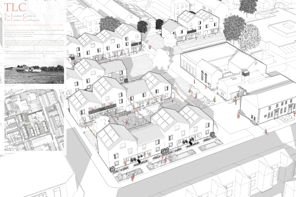 The project entitled “TLC” is a community focused development encompassing a sustainable housing scheme and a retrofit of an already well-loved community centre. TLC aims to improve the standard of wellbeing and social interaction seen within new urban developments as these communities deserve better.