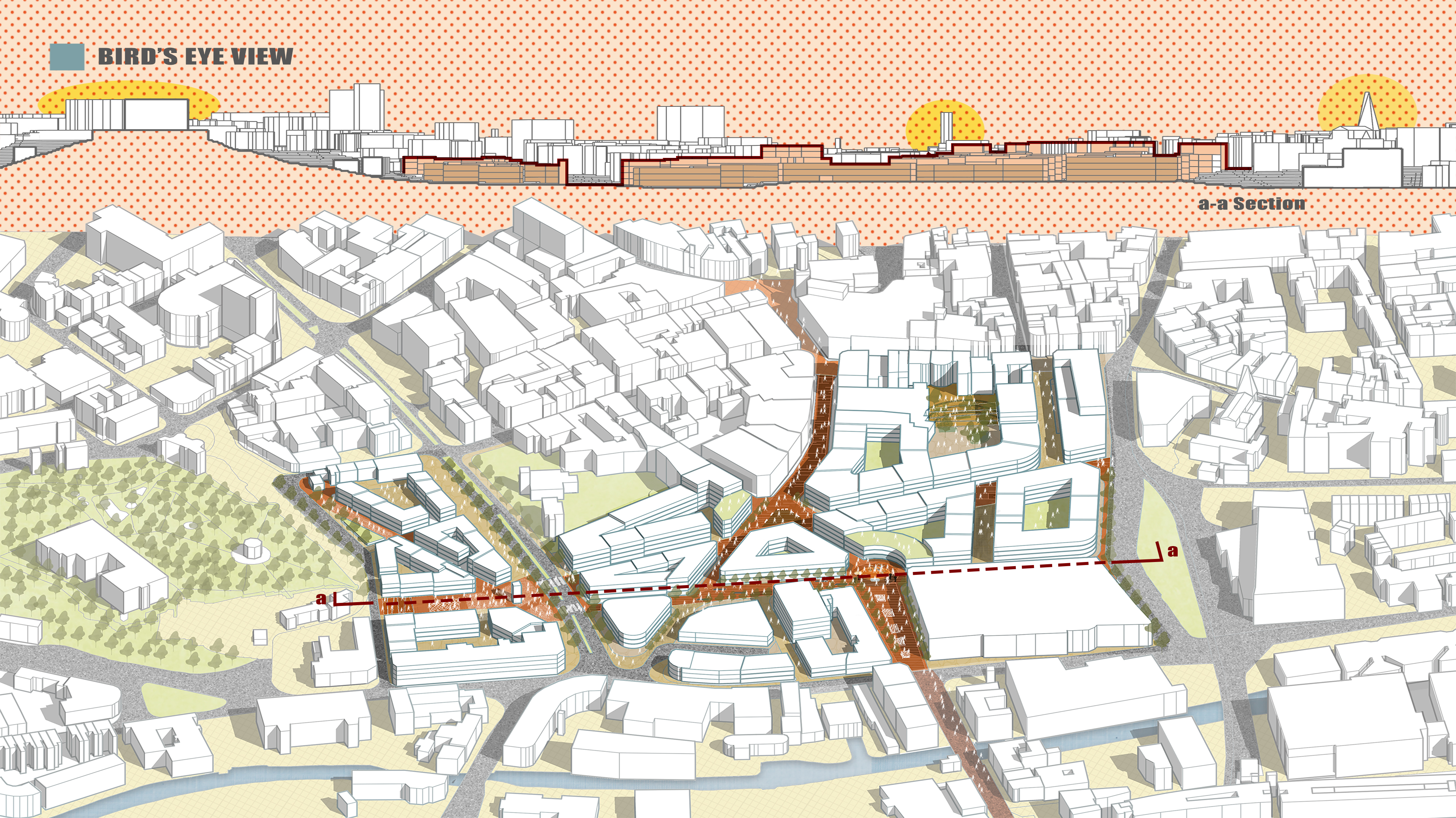 The first project: Broardmarsh allowed us to learn about the importance of the connection between the site and its surroundings in urban design. The design concept of a human perspective connects the landscape of the main street of the site with Nottingham Castle on the west and the church on the east, creating clear paths for visitors.