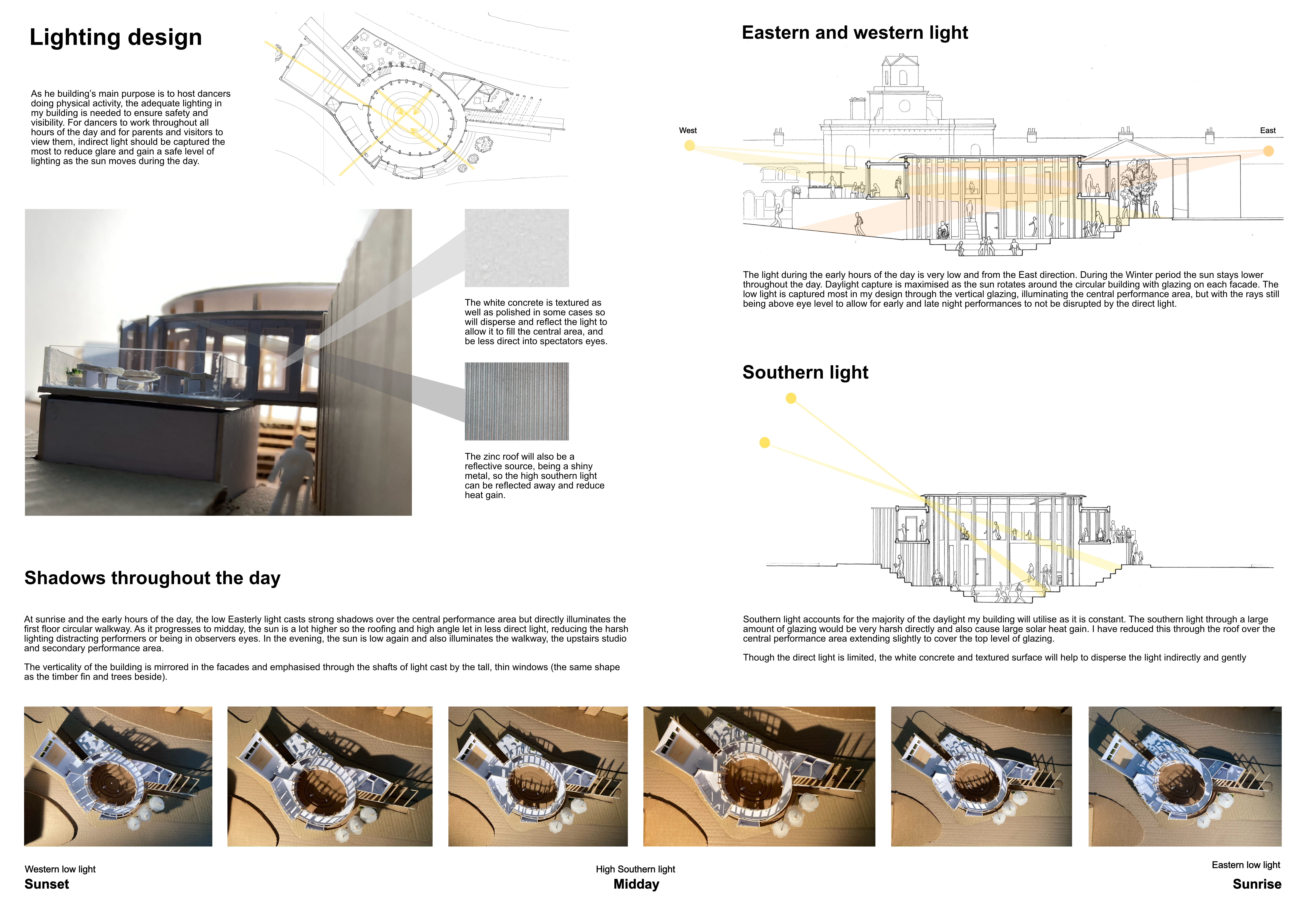 This project was for the Comprehensive Design Project, creating a two-storey dancehall at Canning Circus. The main focus and interest of my design and site was that it was a junction, leading me to create many different routes and methods of venturing with slopes and stairs and lifts.