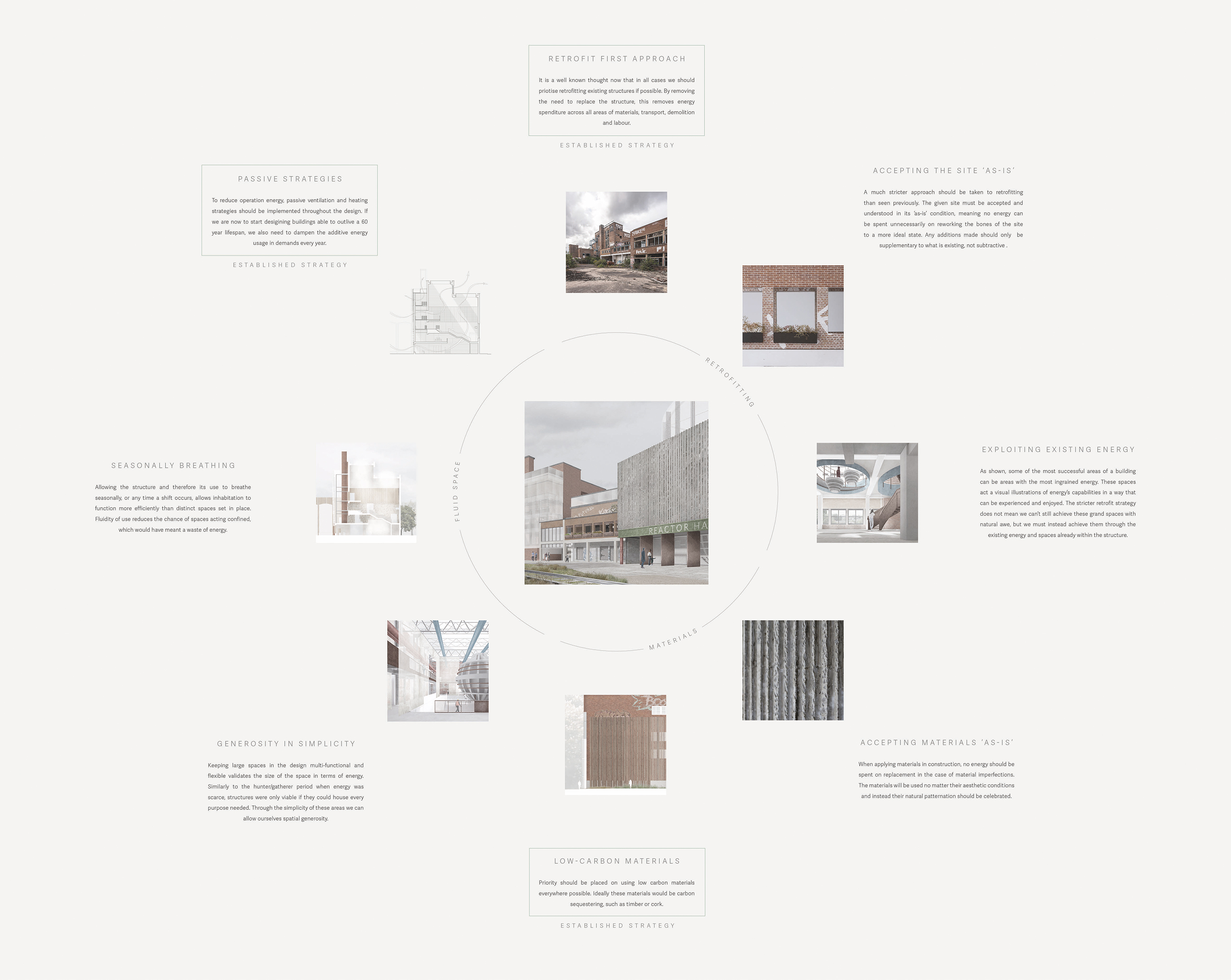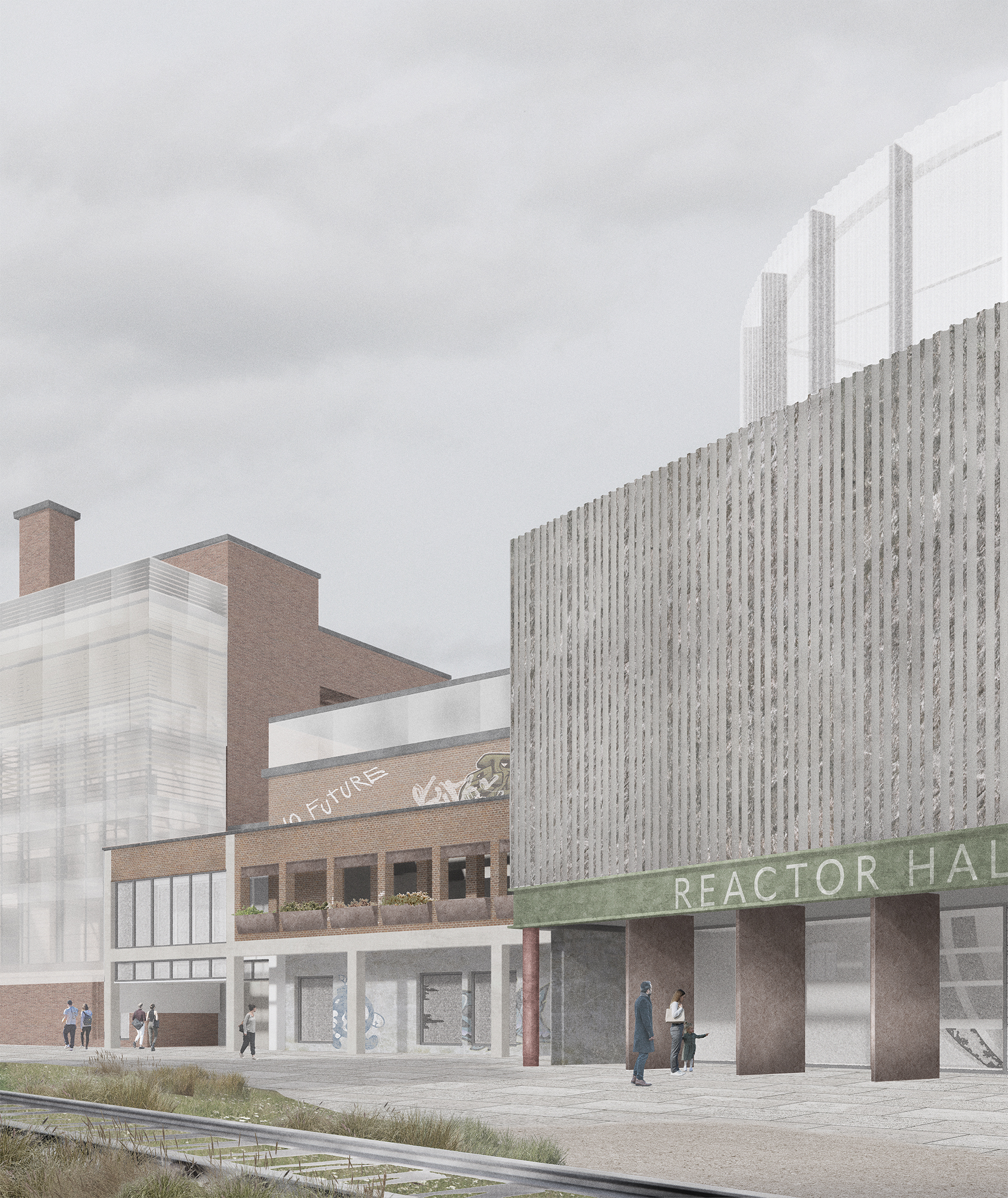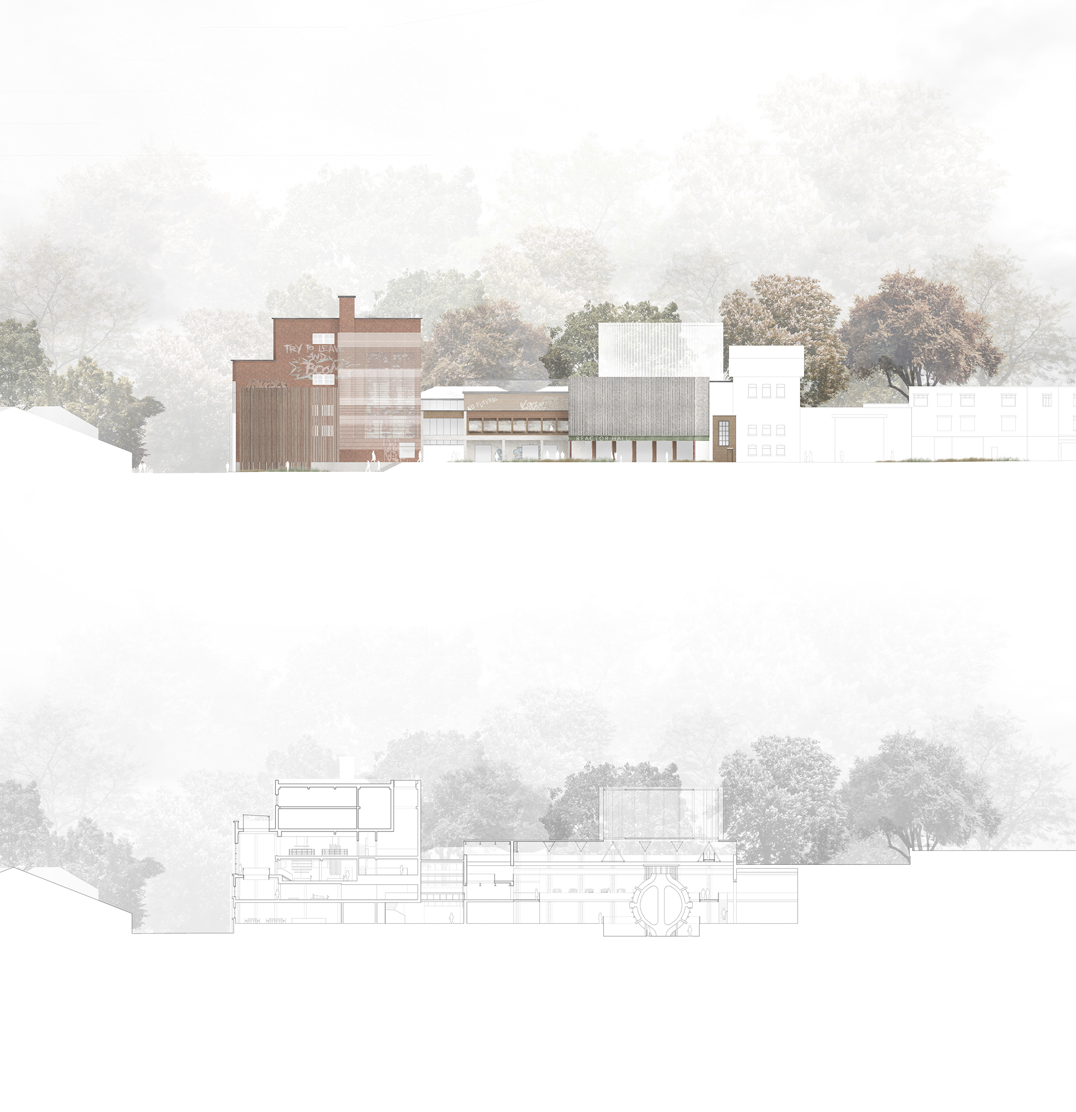 The Neepsend Energy Demonstration employs various strategies to allow appreciation towards energy, whilst exploring sustainable approaches that go beyond current overarching benchmarks. Reusing an obsolete industrial structure in Sheffield, the scheme pushes existing boundaries on attitudes about reuse. The project houses a small-scale demonstration fusion reactor and exhibition space combining research, teaching, and public outreach. Nuclear fusion has been touted as the future ‘alchemist’s gold’, however is unlikely to solve our relationship with energy. The site becomes a central hub for the surrounding community, a visual connection to their energy, both through its literal production but also its expressions in people, passive solar and ventilation strategies, and aggressive reuse that enjoys existing energy. Making what has previously been considered an intangible force, tangible.