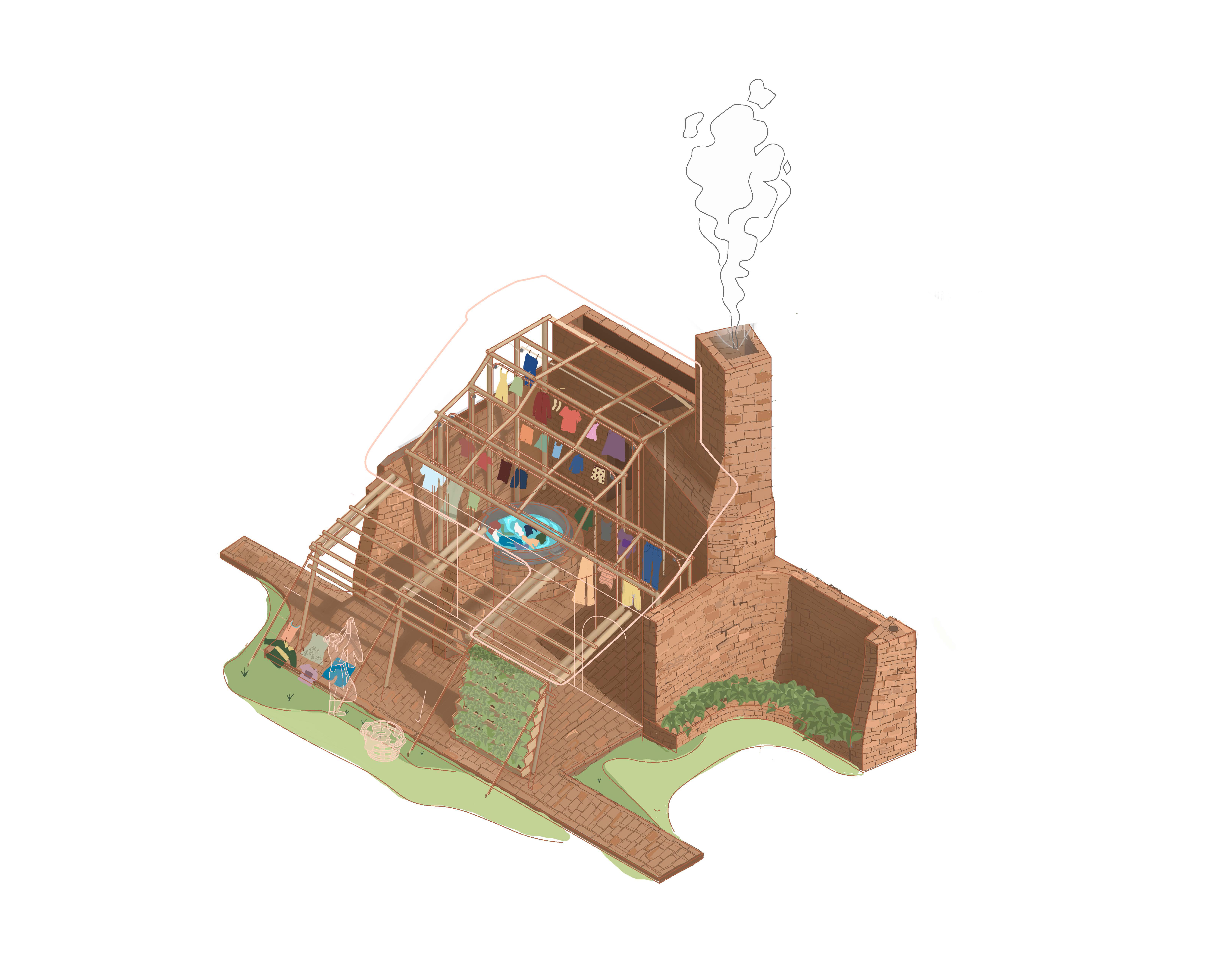 The community is to be self-built in order to avoid facing discrimination from settled people. Construction will take place in stages, beginning with the foraging of materials from across the ten streets and ending with travellers, reaching out to regreen surrounding to the surrounding community creating alternative food sources with the intention of shifting the perception of travellers.