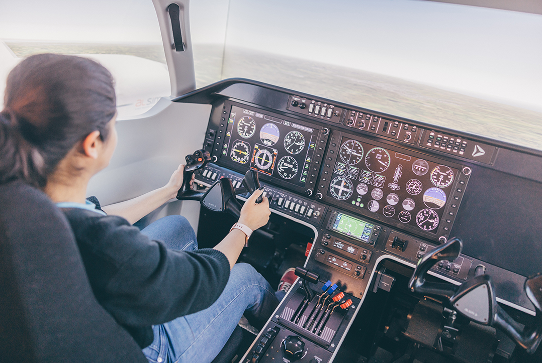 It's used in teaching sessions along with four Next Level Flight Simulator Cockpits, each equipped with a complete control set and triple monitors for an immersive flight experience. You'll also be able to access our flight simulators as part of optional extra-curricular sessions. These extra sessions are led by aerospace students with piloting experience, and provide even more opportunities to increase your flying skills.