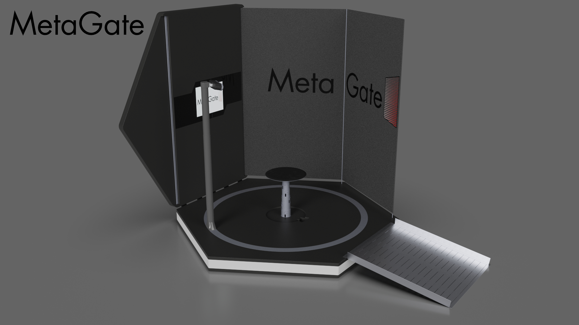 Currently, it is time consuming and expensive to capture accurate 3D data for making avatars to ‘wear’ when in VR. The process requires an expensive, handheld scanner operated by a technician to be manually pointed and moved around the target to build up a cloud of 3D data points. MetaGate solves these problems by providing a mobile, automated 3D scanning booth capable of quickly and reliably taking high quality 3D scans of both a user’s facial geometry and colours.