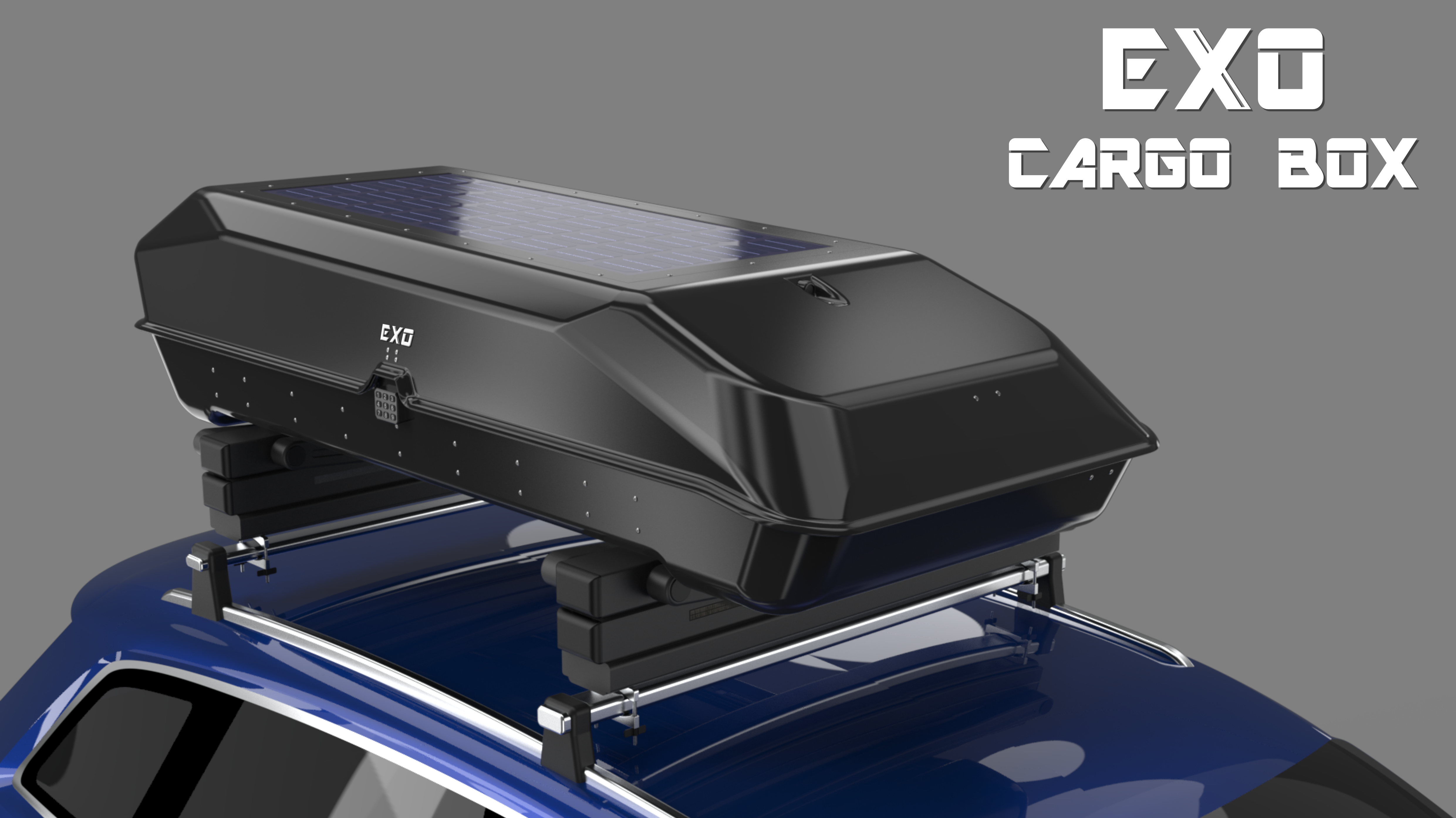 I have designed the EXO Cargo Box which has reimagined how users interact with vehicle roof storage. The Exo Cargo Box is a feature packed reinvention of a roof box which provides users with greatly improved accessibility and additional functionality, to create a better user experience. The roof box has an integrated rail system which brings the box down beside the vehicle to makes accessing the roof a lot more practical. Users can then easily load and unload items at a comfortable height without straining themselves or clambering up the car to reach onto the roof.
