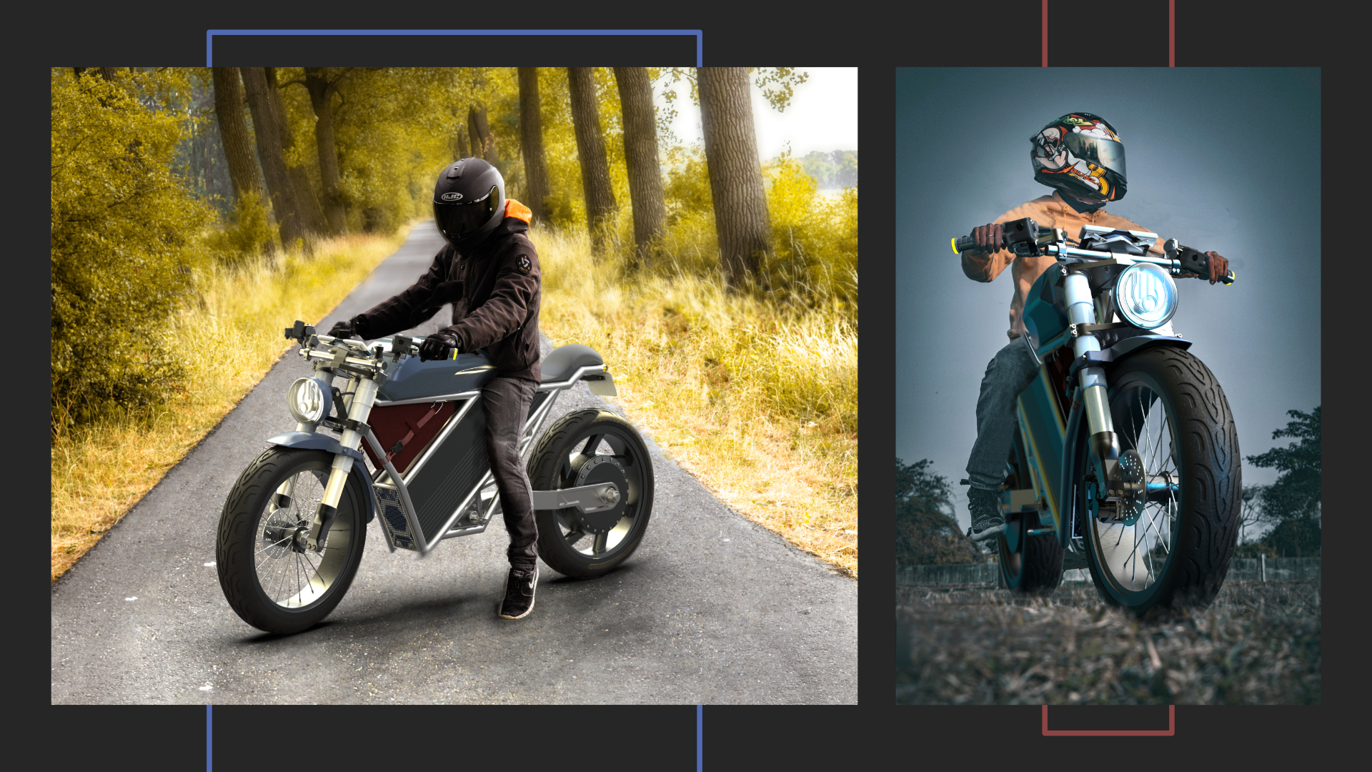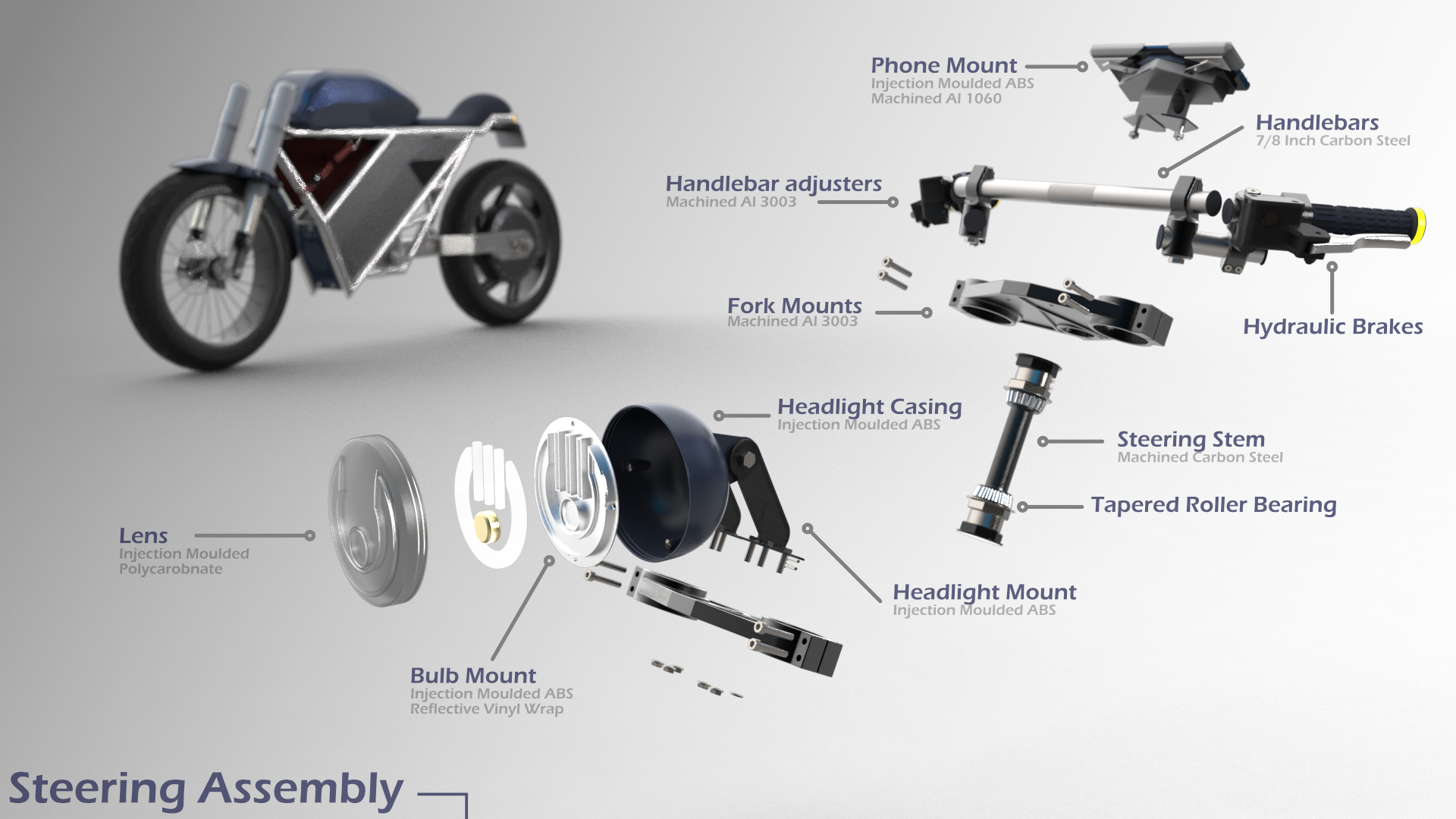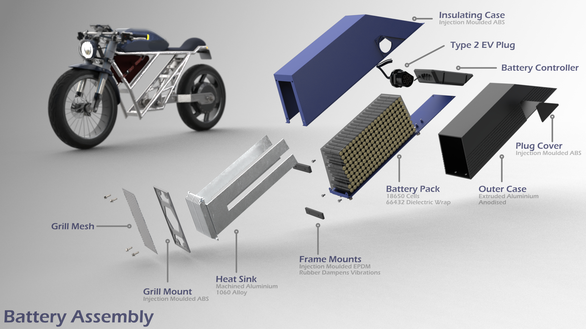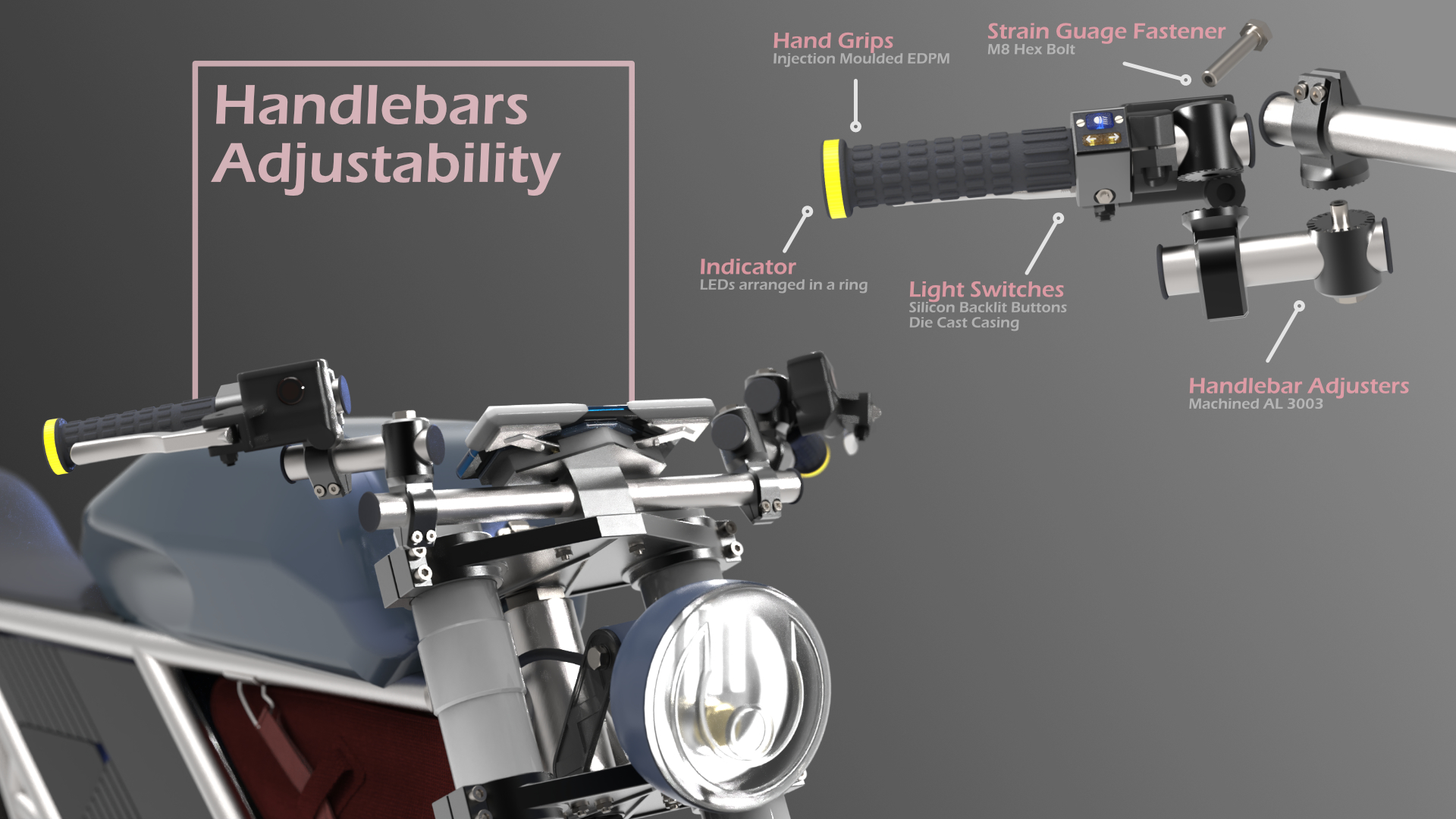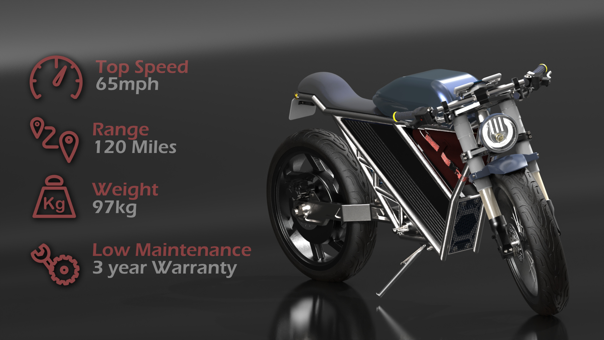 The task is to design an Electric Motorcycle for the UK market, considering the style, safety, and comfort as well as the efficiency and ease of use. The Bike needs to be agile and easy to ride in a tight city environment and improve on existing products through larger storage and more adjustability. The design has been inspired by classic cafe racers from the 20th century, whilst maintaining a sense of technological relevance by highlighting the more modern features like the battery and the motor. Also the position of the powerful LED lights on the bike have been considered to provide maximum visibility on the road, improving rider safety.