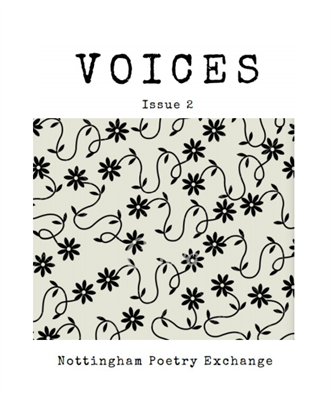 Voices features the work of poets at the University of Nottingham and throughout the East Midlands. It is published by Nottingham Poetry Exchange, a monthly programme of seminars, performance evenings, and reading group. Nottingham Poetry Exchange is supported by the University of Nottingham School of English.