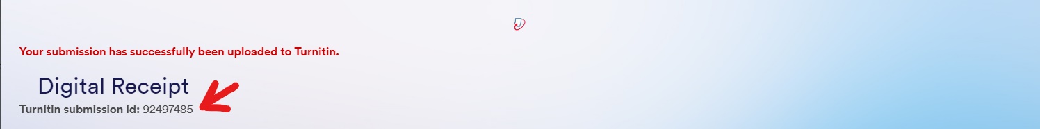 Upon submission, you should receive a digital receipt to confirm your submission has been accepted. Please keep a record of the TurnItIn submission ID for any queries.
