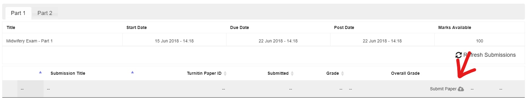 4. Some Turnitin dropboxes have more than one part to them. You can only upload one document to each part of a Turnitin dropbox. If your Turnitin dropbox has more than one part, there will be tabs underneath the details of the Turnitin dropbox (circled below). Please make sure that you upload to the correct part of the dropbox.