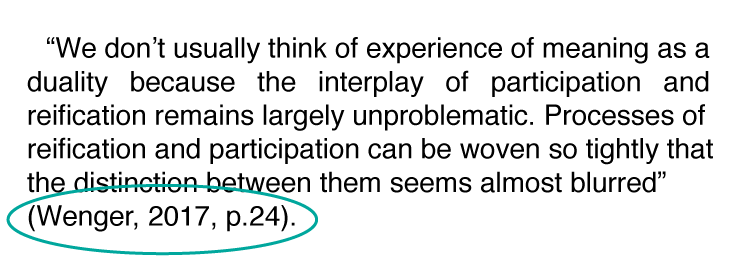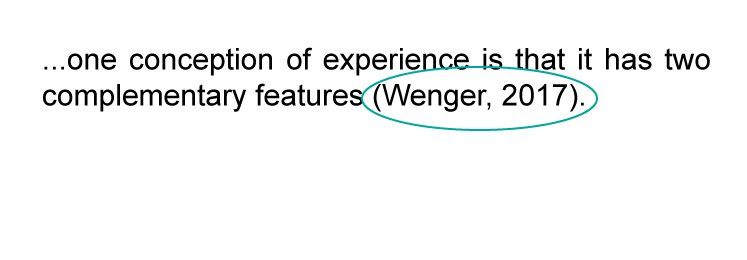 You can see that the text now has a reference to the author and the date published. Note also that the page number of the book from which the direct quote was taken must be included. This will correspond to the record you have placed in the list of references. This is an example of quoting directly from the text.