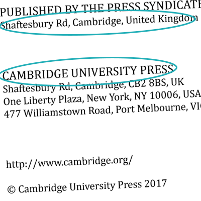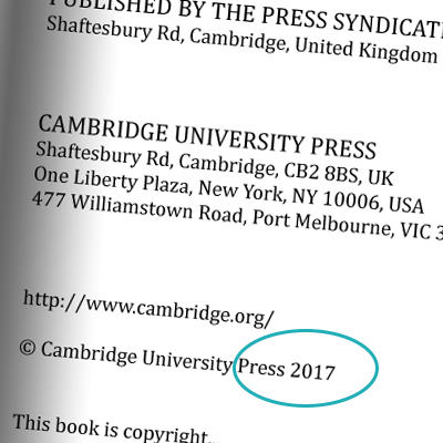 You can find all the information you need in the first few pages, including the author's name, date, full title and the publisher's details.