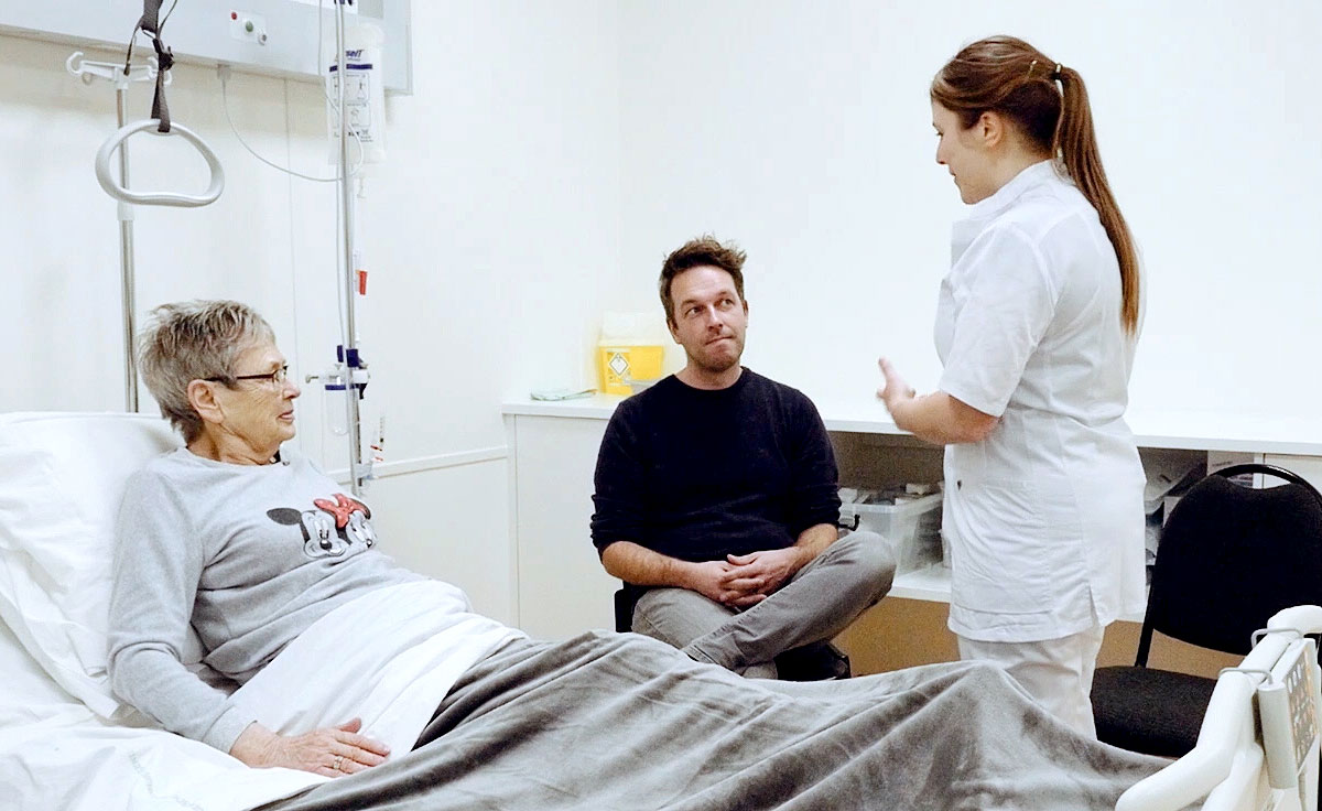 This video is linked to the role of 'relative'. The nurse greets Mrs. Look and Jan and thereby recognises the personal relationship.