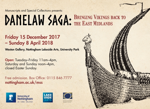 ‘Danelaw Saga’ has been jointly curated by Professor Judith Jesch and Dr Roderick Dale of the Centre for Study of the Viking Age, and by Manuscripts and Special Collections at the University of Nottingham. The Bringing Vikings back to the East Midlands project is funded by the Arts and Humanities Research Council.
