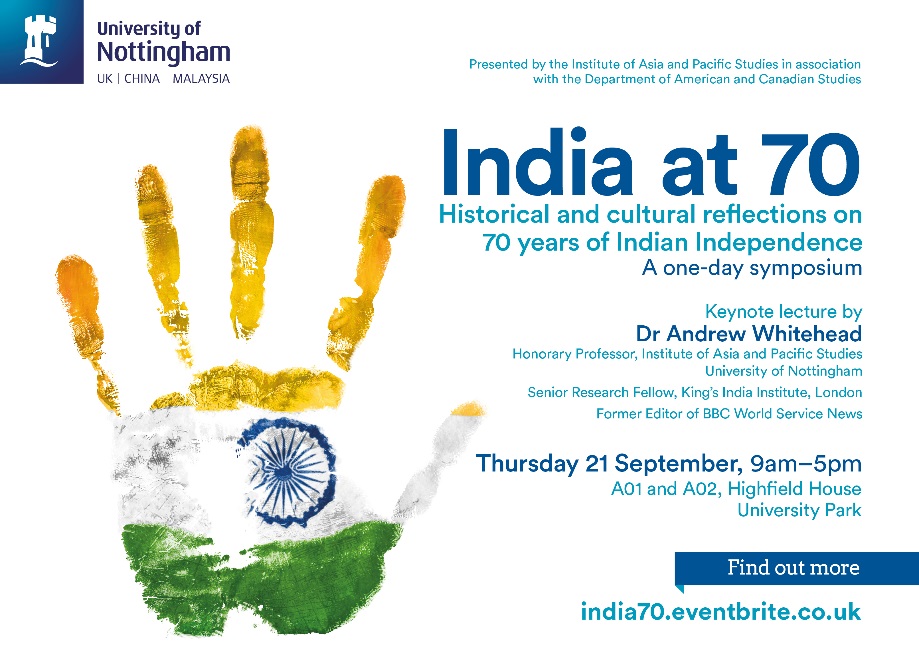 A free, one-day symposium marking the 70th anniversary of India’s independence. This multidisciplinary conference seeks to engage with the events of 1947 in their historic moment and the multiple afterlives of Indian independence as a concept in fields ranging from history and politics to literature, film, music, and performance studies.