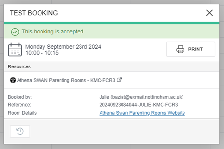 5. You will also receive an email confirmation that your booking has been accepted which includes the Digi lock code for accessing the parenting rooms.