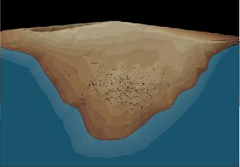 It seems likely that both Powidz and Polanowu were originally lakeside dwellings that became submerged after the 6th century BC. This would tie in with evidence from Biskupin where changes in climate after 700 BC led to a rise in the groundwater level of 2m which ultimately led to the abandonment of the site after 500 BC. The computer model below simulates the projected 2 metre rise in water level from the Late Bronze Age to the present day level at Polanowu.