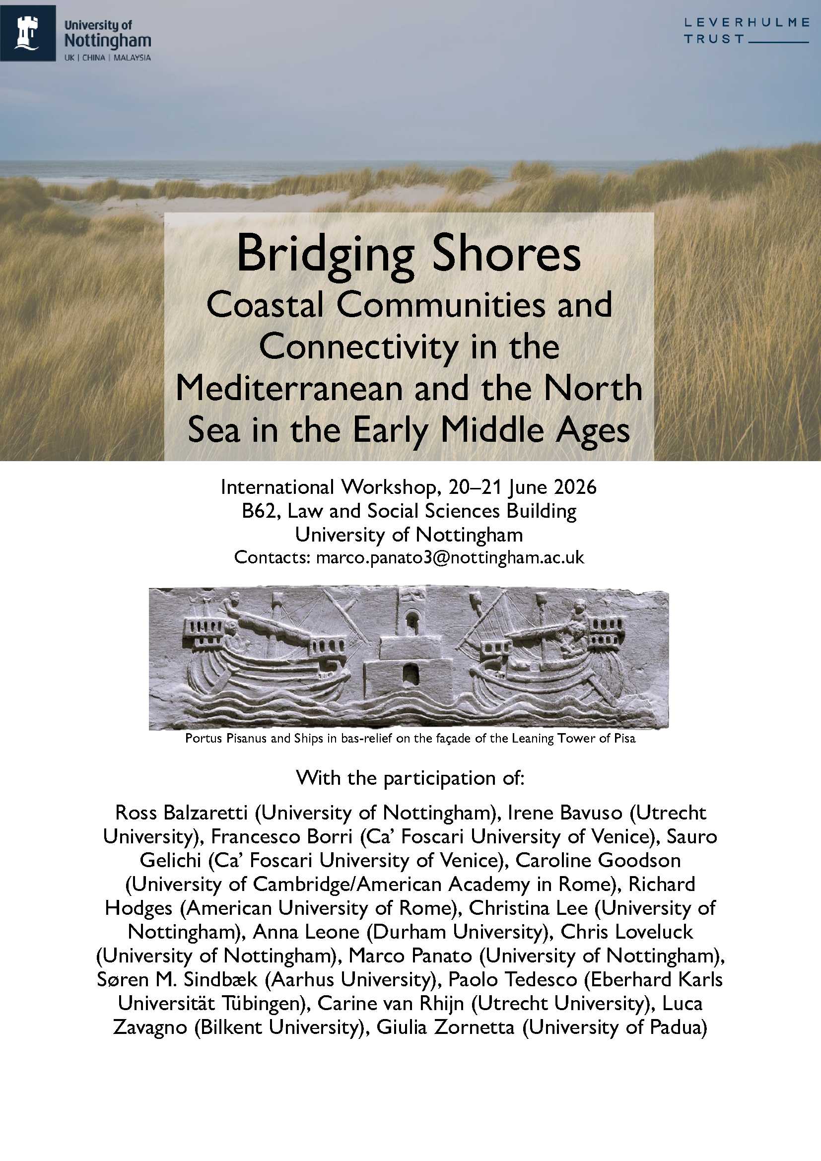 Participants:Ross Balzaretti (University of Nottingham)Irene Bavuso (Utrecht University)Francesco Borri (Ca’ Foscari University of Venice)Sauro Gelichi (Ca’ Foscari University of Venice)Caroline Goodson (University of Cambridge/American Academy in Rome)Richard Hodges (American University of Rome)Christina Lee (University of Nottingham)Anna Leone (Durham University)Chris Loveluck (University of Nottingham)Marco Panato (University of Nottingham)Søren M. Sindbæk (Aarhus University)Paolo Tedesco (Eberhard Karls Universität Tübingen)Carine van Rhijn (Utrecht University)Luca Zavagno (Bilkent University)Giulia Zornetta (University of Padua)Please register to attend here