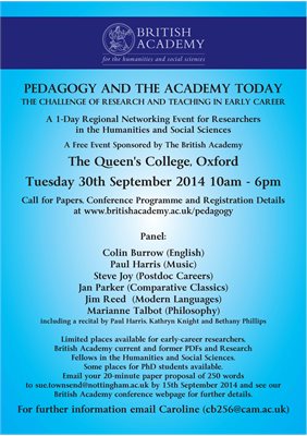 Held at The Queen’s College, Oxford, it presents a unique opportunity for current Post-Doctoral Fellows (PDFs) and early-career academics in the humanities and social sciences to meet in order to discuss ideas about pedagogic practice. There will be a programme of short talks by guest speakers, panels and a round-table discussion to close the day. All early career academics are welcome to submit a proposal for a paper.