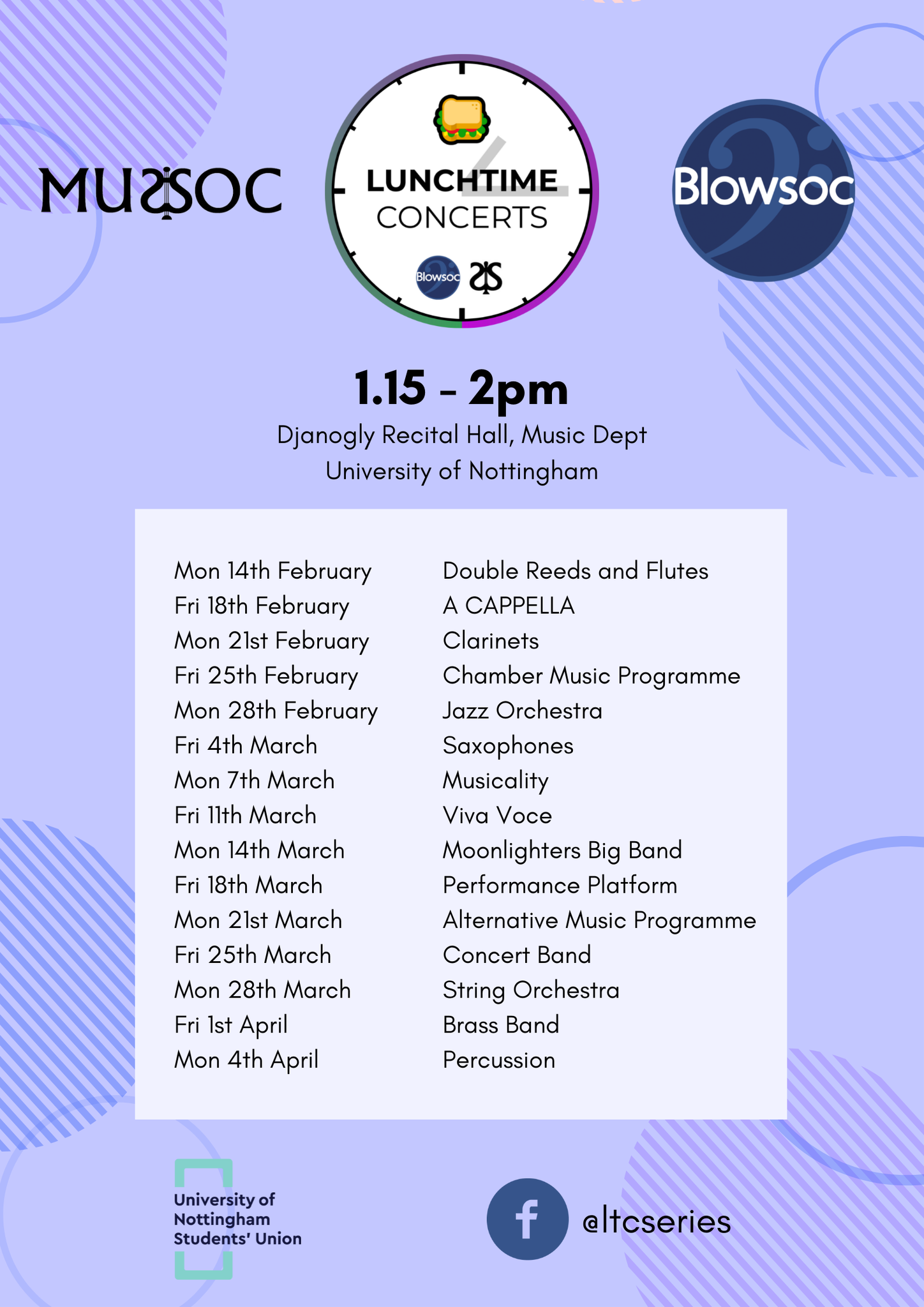 Lunchtime concerts are free and run from 1.15-2pm during term time.