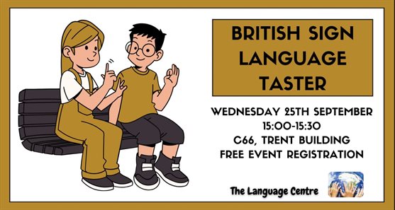 British Sign Language Taster session will be held at 3pm on 25 September in the Self Access Centre (Trent C66), located in the Trent building.