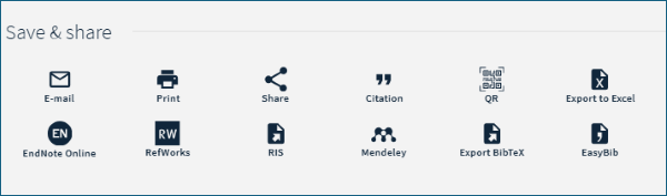 - Export to referencing software - allows you to export to a variety of tools e.g. EndNote Online, Mendeley, RIS etc.