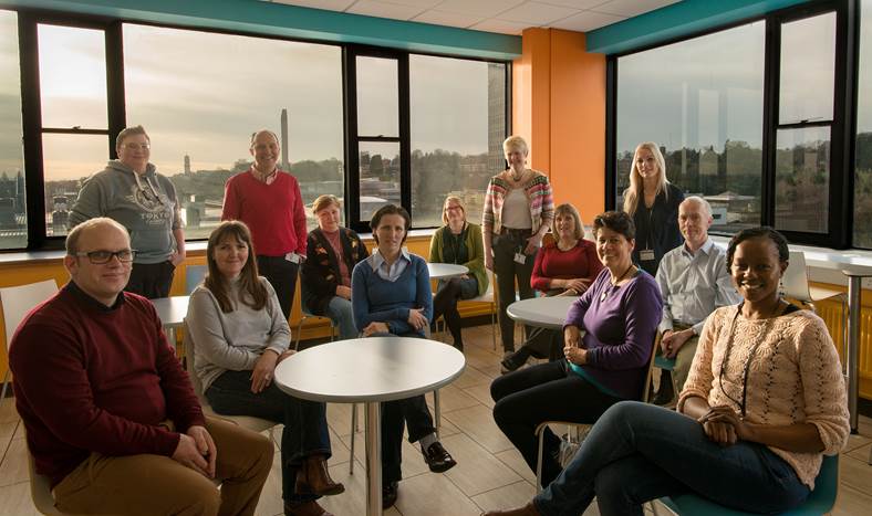 From left to right; Shaun Hare, Gillian Coburn, Natasha Russell, Miguel Camara, Despina Constantin, Jeanette Woolard, Kim Hardie, Sally Cordon, Diane Mitchell, Gemma Bosson, Ronald Chalmers, Tamsin Majerus and Yvonne Mbaki.