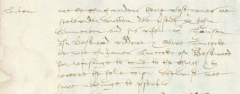 Many of the Presentment Bills from the 1610s were also initialled 'M P' in the top left corner, indicating that they had been examined by Michael Purefey, Deputy Official of the Archdeaconry, 1604-1627. This practice had ceased by the early 1620s.