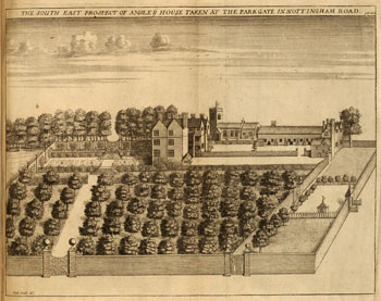 The South East Prospect of Ansley [Annesley] House [Nottinghamshire], by Richard Hall, 1676, published in Thoroton's 'The antiquities of Nottinghamshire'
