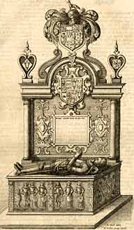 Engraving of monument to Sir Henry Pierrepont (1546-1616) , in Holme Pierrepont Church, by R. Hall, engraved by W. Hollar, 1676